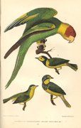 Parrot, Canada Flycatcher, Hooded F., Green black capt F. |