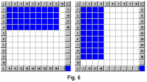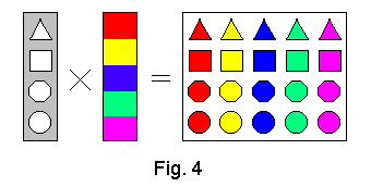 The comutativity property is illustrated a similar way in Fig. 6. It is visually clear there that 4*9 gives the same number of blue squares as 9*4.