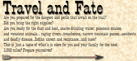leg is saved. What is the best remedy? Alas those who did NOT do the research lose the use of their limb. Will you have to limp to Oregon or can you ride in the wagon a few days to recuperate? (At least you didn't lose your life! Sometimes homework can be a life or death situation.) (Teacher's note: This scenario was prompted by Catherine